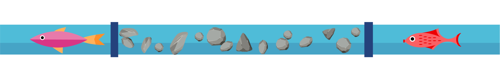 Сделаем трубу шире, оставив количество камней тем же — воде полегчает, поток увеличится.