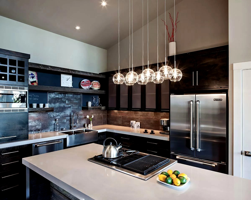 Как сделать освещение на кухне, чтобы скорректировать ее форму