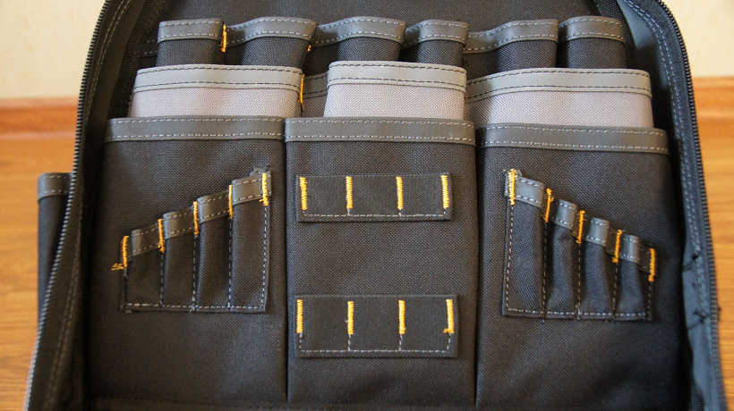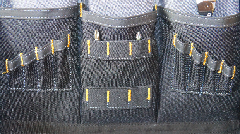 При ближайшем рассмотрении маленькие карманы в центре сгодятся разве что для бит. В 8 карманов по краям можно положить сверла, маленькие отвертки или что-то подобное.