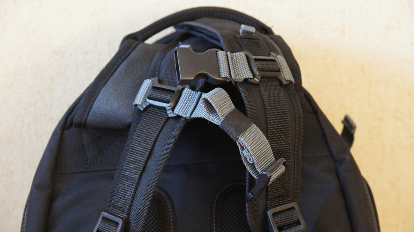 На этой фотографии видно расположение «стяжки» плечевых ремней, которую в определенных пределах можно регулировать.