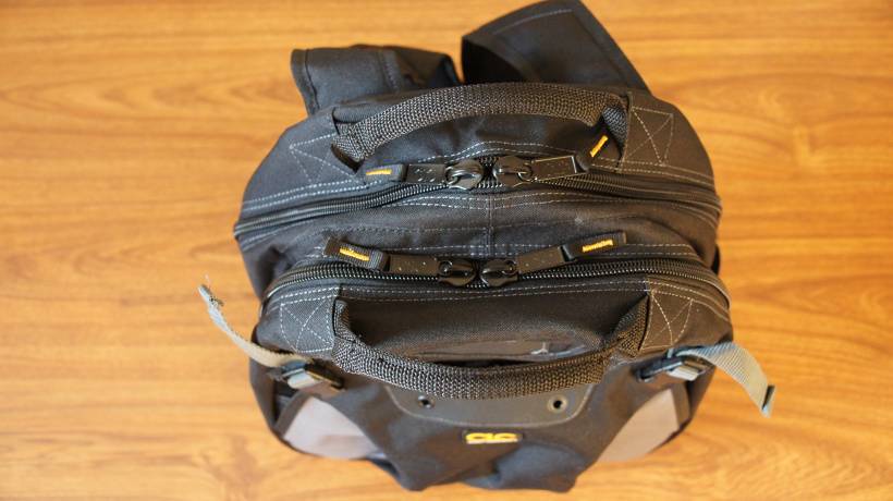 Сверху расположены две ручки для переноски. Ручки очень прочные, на рюкзак с 15 кг поклажи их хватает с большим запасом.