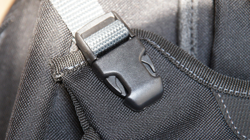 Фиксатор лямок оборудован специальной резинкой для зажима свободного конца регулировочной петли.