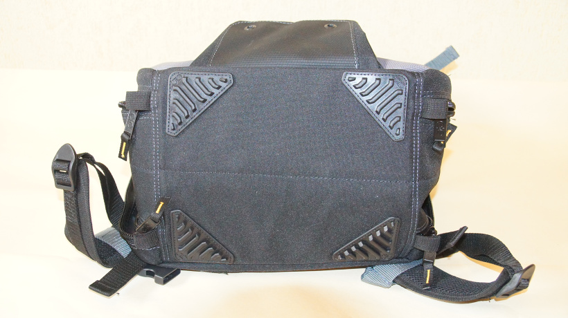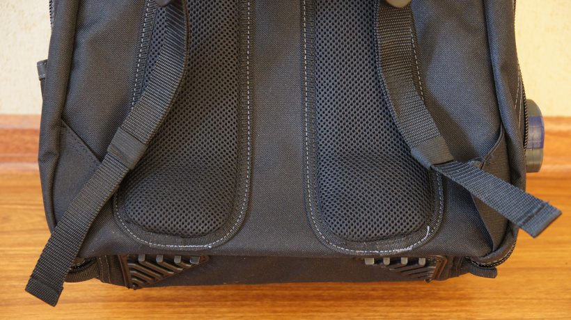 С тыльной стороны карманов нет, зато есть плечевые ремни с фиксатором и мягкие нашивки на спину.