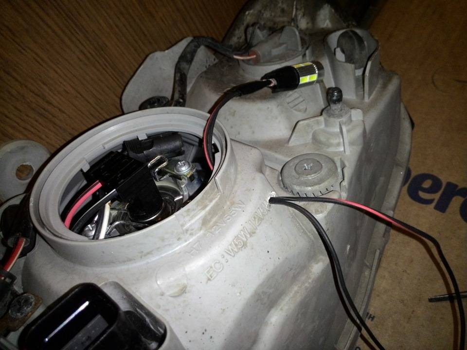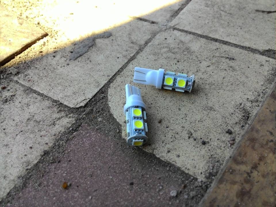 - Установка вместо «габариток» (слабеньких лампочек накаливания) мощных светодиодных ламп. Тогда достаточно включить «габариты», и все проблемы решены? Не совсем так! Во-первых, могут быть проблемы с ГИБДД, а во-вторых, при таком режиме использования в машине будет гореть достаточно много ламп на панели приборов и на задней части автомобиля. И, напоминаю, сзади будут гореть и перегорать габаритные огни, за которые инспектор может устроить вам ночлег в чистом поле, если лампа не горит, а вы не умеете ее менять.