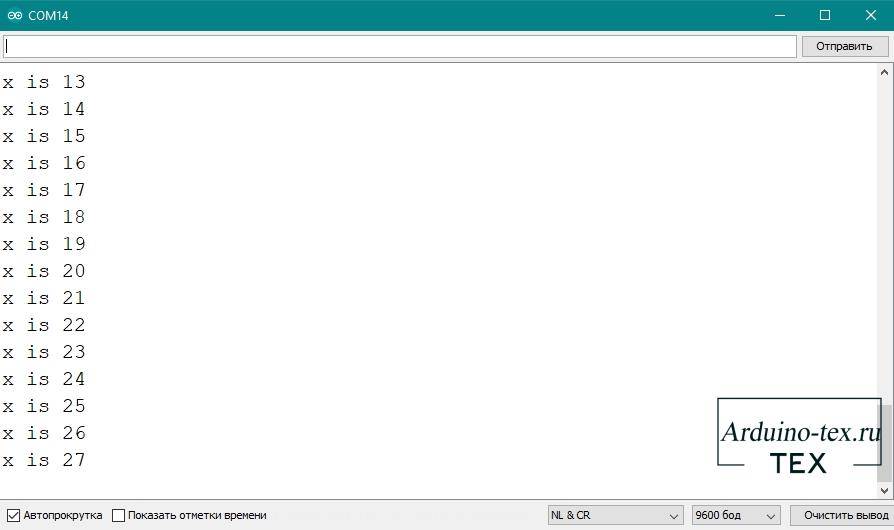 Полученный результат будем выводить в окно последовательного монитора.