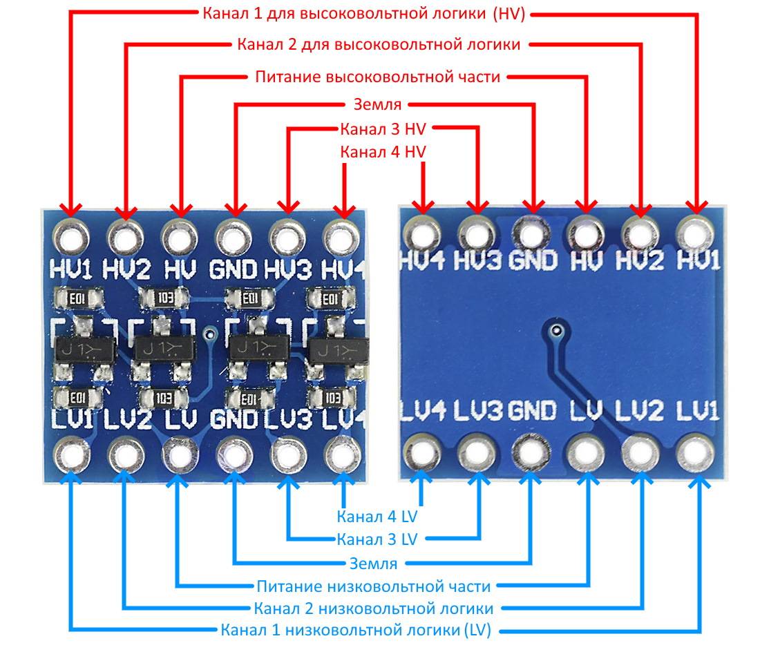 Как не сложно догадаться, сигналы необходимо подключать к соответствующим выводам. Например, если вы подключаете линию тактовой частоты контроллера к высоковольтному каналу HV3, то с другой стороны она будет выходить из канала LV3.