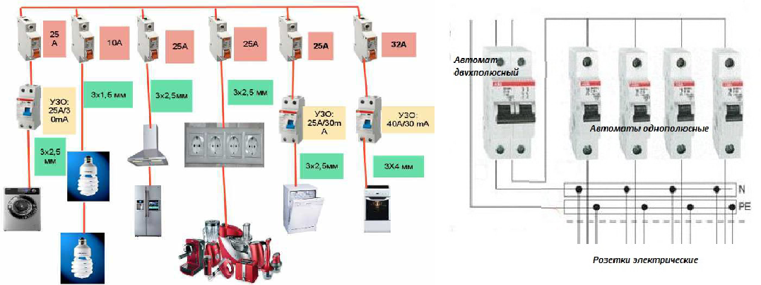 Как известно, в зависимости от напряжения в сети, для защиты устройств и питающих кабелей могут использоваться следующие автоматические выключатели: