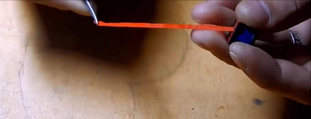 Половинки сердечника обычно склеены так, чтобы между ними оставался зазор. Он служит для оптимизации намагничивания сердечника, замедляя этот процесс и ограничивая скорость нарастания тока. Берем наш импульсный паяльник и нагреваем сердечник. Прикладываем его к паяльнику местами соединения половинок.