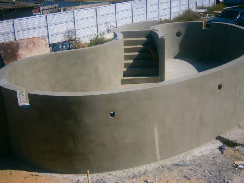При строительстве бассейна на участке любого вида и конфигурации используется бетон. И выбор его нужно осуществлять очень грамотно, чтобы не пришлось в скором времени латать щели или. Еще того хуже, дыры в поверхности чаши. Поэтому специалисты советуют применять бетон преимущественно марки М350 – М400. Надо учесть и показатель морозоустойчивости, ведь ваш бассейн не будет сборной конструкцией, которую можно демонтировать в случае сильных холодов. Поэтому выбирайте показатель морозоустойчивости F200, а водонепроницаемости — W6. Для моделирования бетонной чаши для бассейна своими руками, используют тяжёлые бетоны с пластификаторами и гидрофобными добавками известных марок. Особая плотность бетона достигается вибрированием (с помощью вибратора) и вакуумированием (вакуум-насосом), что уменьшает величину капилляров и страхует изделие от раковин.