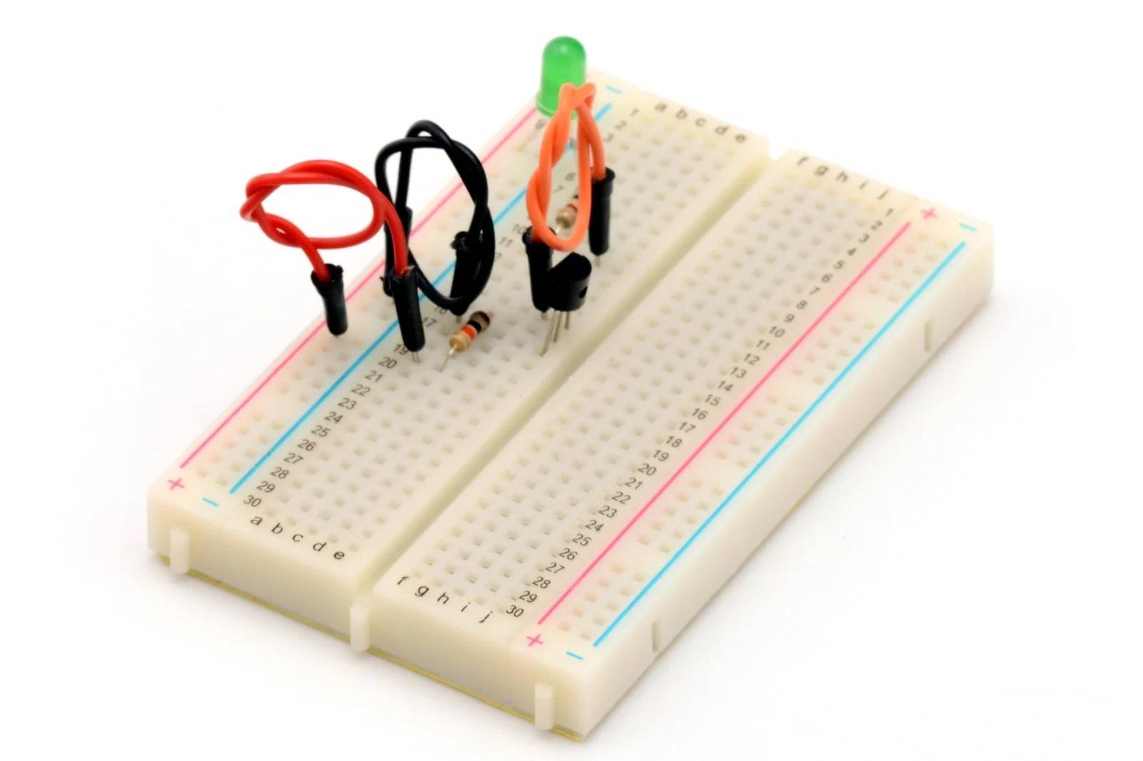 Итак, теория позади. Пришло время проверить, как это работает на практике. О транзисторах можно очень много и долго рассказывать, но мы обсудим только их основные принципы работы. Мы начнем со схемы, которая будет использовать транзистор в качестве ключа, управляющего освещением светодиода. Таким образом, контролируя ток базы, мы сможем включать и выключать диод, подключенный к транзистору.