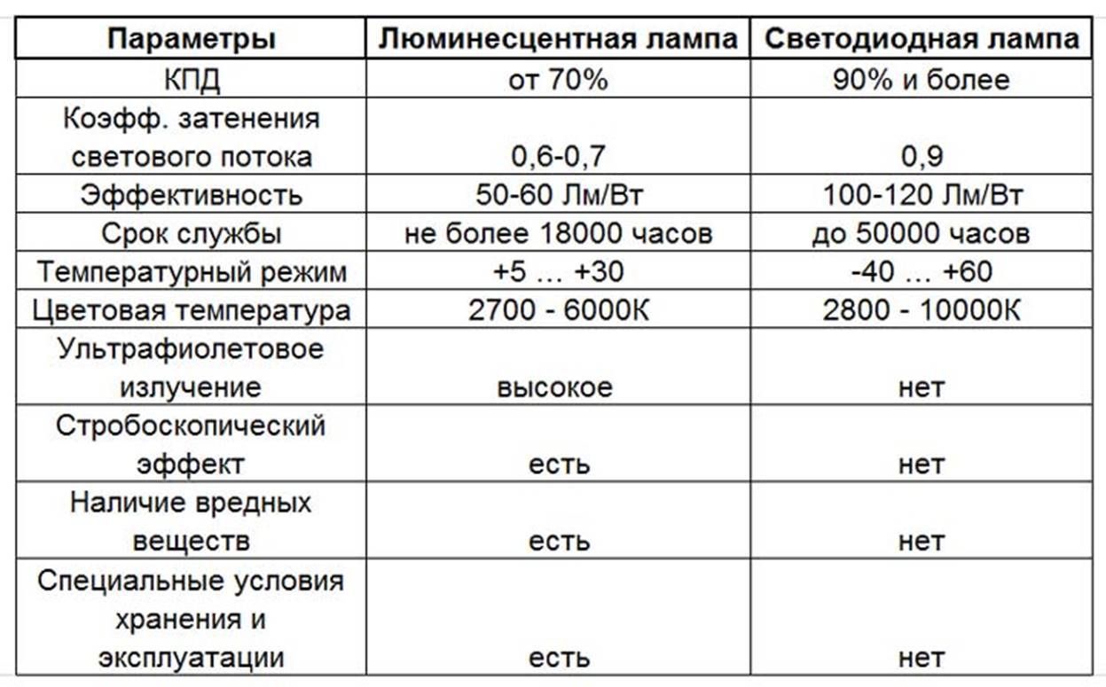 Большая часть современных люминесцентных приборов способна проработать 8-12 тыс. часов. Показатель зависит от типа и размера прибора.
