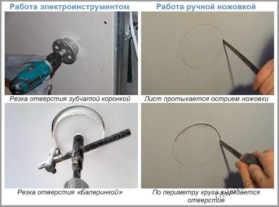 Чтобы получить вырез под розетку или светильник, используются три основных метода: