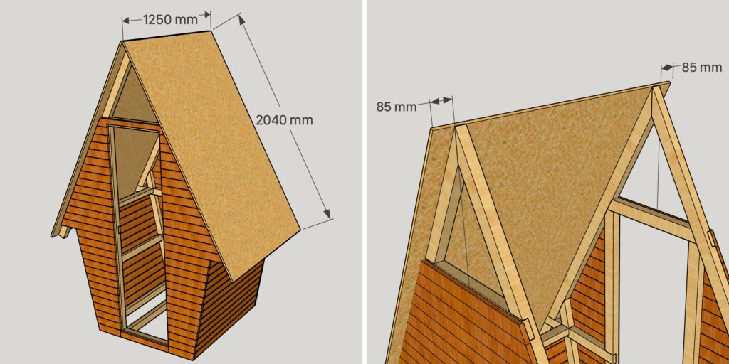 - Обшивают каркас ОСБ-плитами внутри и снаружи. Крышу тоже можно сделать из ОСБ, но сверху плиты придется покрыть шифером или рубероидом для защиты от дождя.