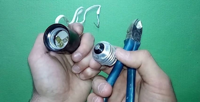 Перед вкручиванием лампочки рекомендуется нанести на резьбу небольшое количество графитовой смазки. Она предупредит отклеивание металлического корпуса от колбы. Если это все же произошло, то потребуются пассатижи (бокорезы). Светильник отключается от источника питания, а застрявший элемент аккуратно выкручивается из патрона.