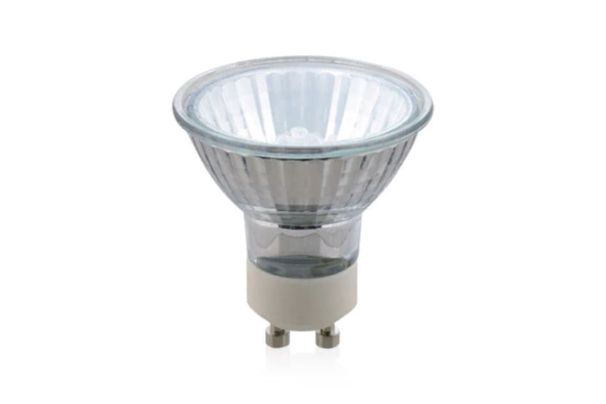 По сути, те же лампы накаливания, но более яркие. Благодаря повышенной температуре спирали и специальным галогенным присадкам спектр их излучения практически совпадает со спектром привычного человеку солнечного света. Могут работать с диммером, но в режиме пониженной яркости превращаются в обычные лампочки накаливания с красноватым спектром излучения. Недостатками галогенных приборов являются относительно низкий КПД и высокая (250 градусов и выше) рабочая температура колбы, что ограничивает их применение в светильниках закрытого типа.