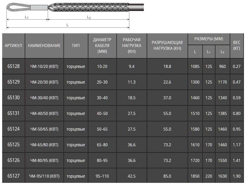 - отдельно укажем на то, что чулок рассчитывается таким образом, чтобы его разрушение наступало при воздействии усилий, заметно превышающих разрывные усилия типового протягиваемого кабеля.