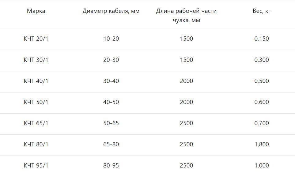 Диаметр чулка, который выбирают в зависимости от сечения кабеля, может варьироваться от 10 до 140 мм.
