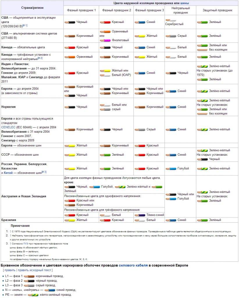 В каждой стране маркировка проводов по цвету разная и может значительно отличаться от нашей. В той же России столько путаницы с нормативами, что они сами не знают каких правил придерживаться.
