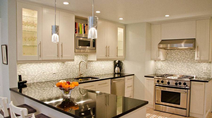 Кухня одно из немногих мест, где дополнительное освещение не то что предпочтительно, а просто необходимо. Особо в этом нуждается рабочая зона, состоящая из поверхности для разделки и приготовления пищи, мойки и плиты, при этом выполняется сразу несколько задач. Кроме своей основной функции, применяемое освещение рабочей зоны становится и одним из декоративных элементов интерьера: