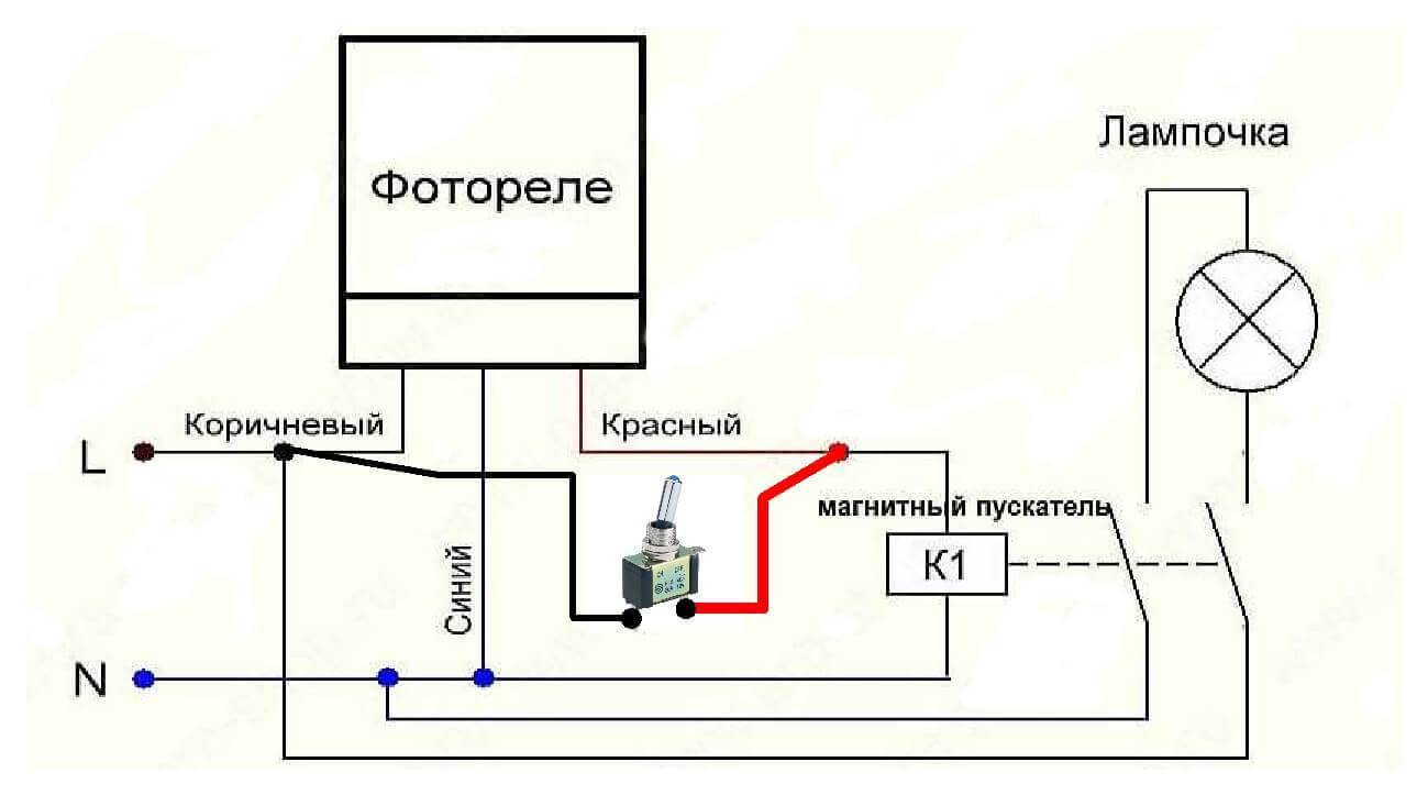 Для уличного освещения в схему необходимо добавить тот самый элемент – фотореле. Его еще можно заменить выключателем. Все эти элементы способны приостановить работу датчика при естественном дневном освещении. При этом фотореле автоматизирует процесс, что очень удобно.