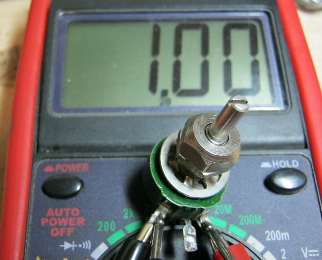 Так как мощность небольшая, всего 1 Вт, то мы не будем нагружать его большим напряжением. Мощность, выделяемая на каком-либо резисторе рассчитывается по формуле P=I 2 R. Значит, этот переменный резистор может делить только маленькое напряжение при маленьком сопротивлении нагрузки и наоборот. Главное, чтобы значение мощности этого резистора не вышло за грани. Поэтому я буду делить напряжение в 1 Вольт.