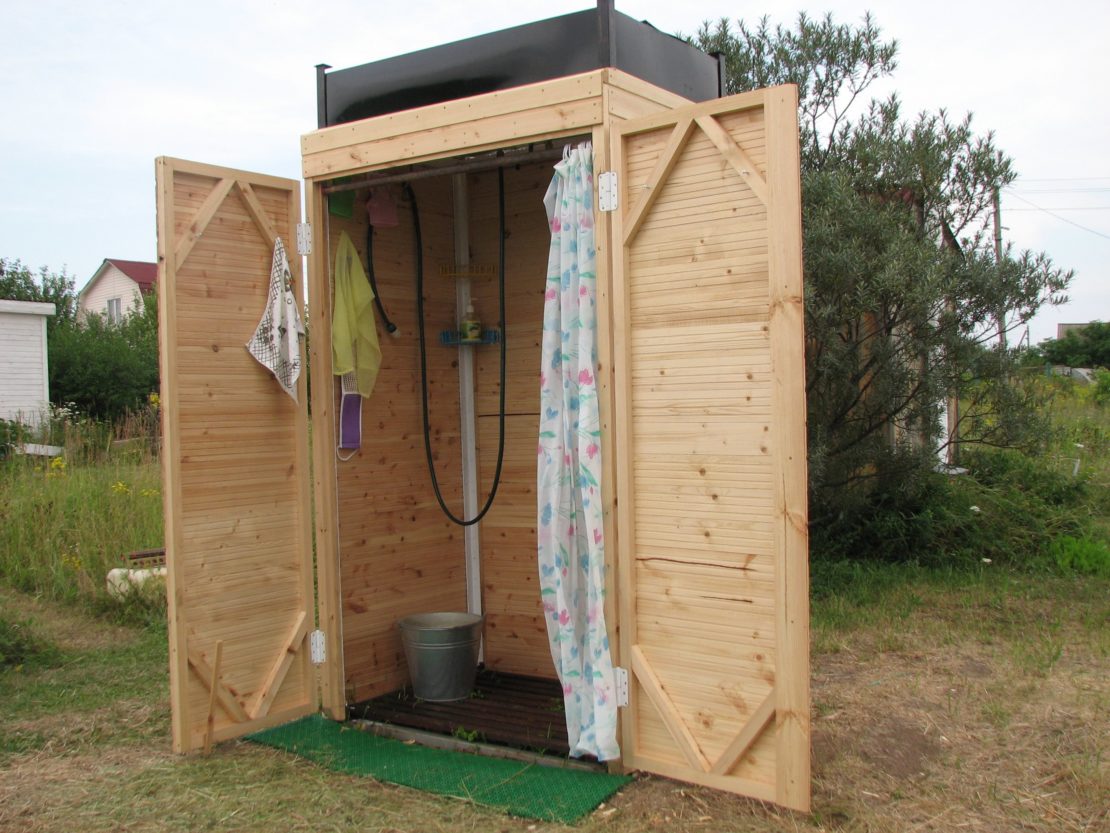 Будущее строение на даче следует расположить на хорошо освещенной площадке, ведь вода должна будет нагреваться от солнца. Если поставить среди деревьев, то нагрева воды даже за день можно не дождаться.
