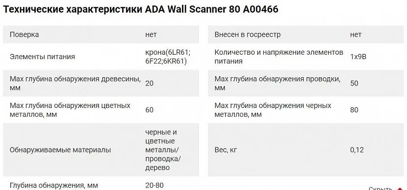Технические характеристики ADA instruments Wall Scanner 80Источник kazan.vseinstrumenti.ru