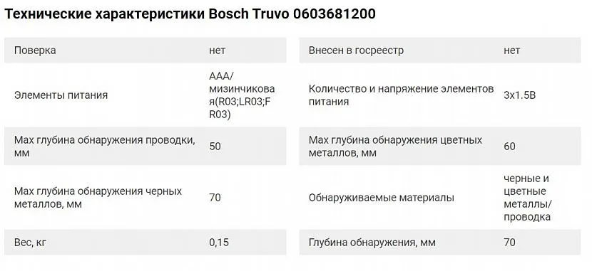 Технические характеристики Bosch TruvoИсточник kazan.vseinstrumenti.ru