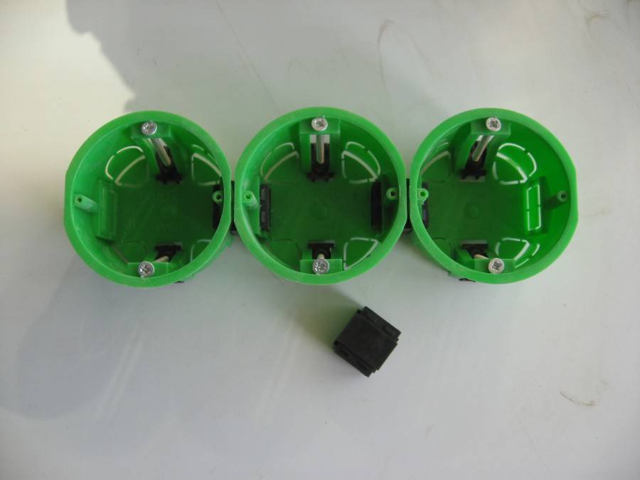 Наиболее распространенным материалом для изготовления подрозетников, является прочный негорючий пластик. За счет этих качеств монтажные коробки могут устанавливаться в отверстия для подрозетников в гипсокартоне и даже в деревянные конструкции. Они часто используются совместно с такими отделочными материалами, как фанера, ДСП, ДВП, вагонка и другими декорами.