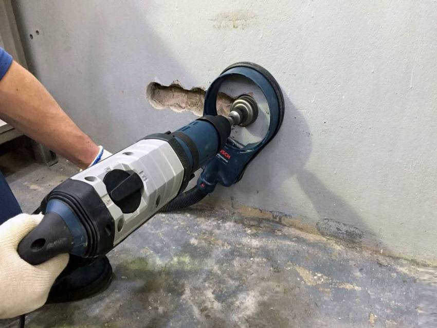 Следует отметить, что бетонные стены тяжело долбятся вручную, поэтому нужным оборудованием, значительно облегчающим работу, нужно обязательно обзавестись.
