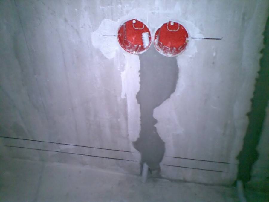 Пример крепления подрозетников в бетонную стену гипсовым раствором