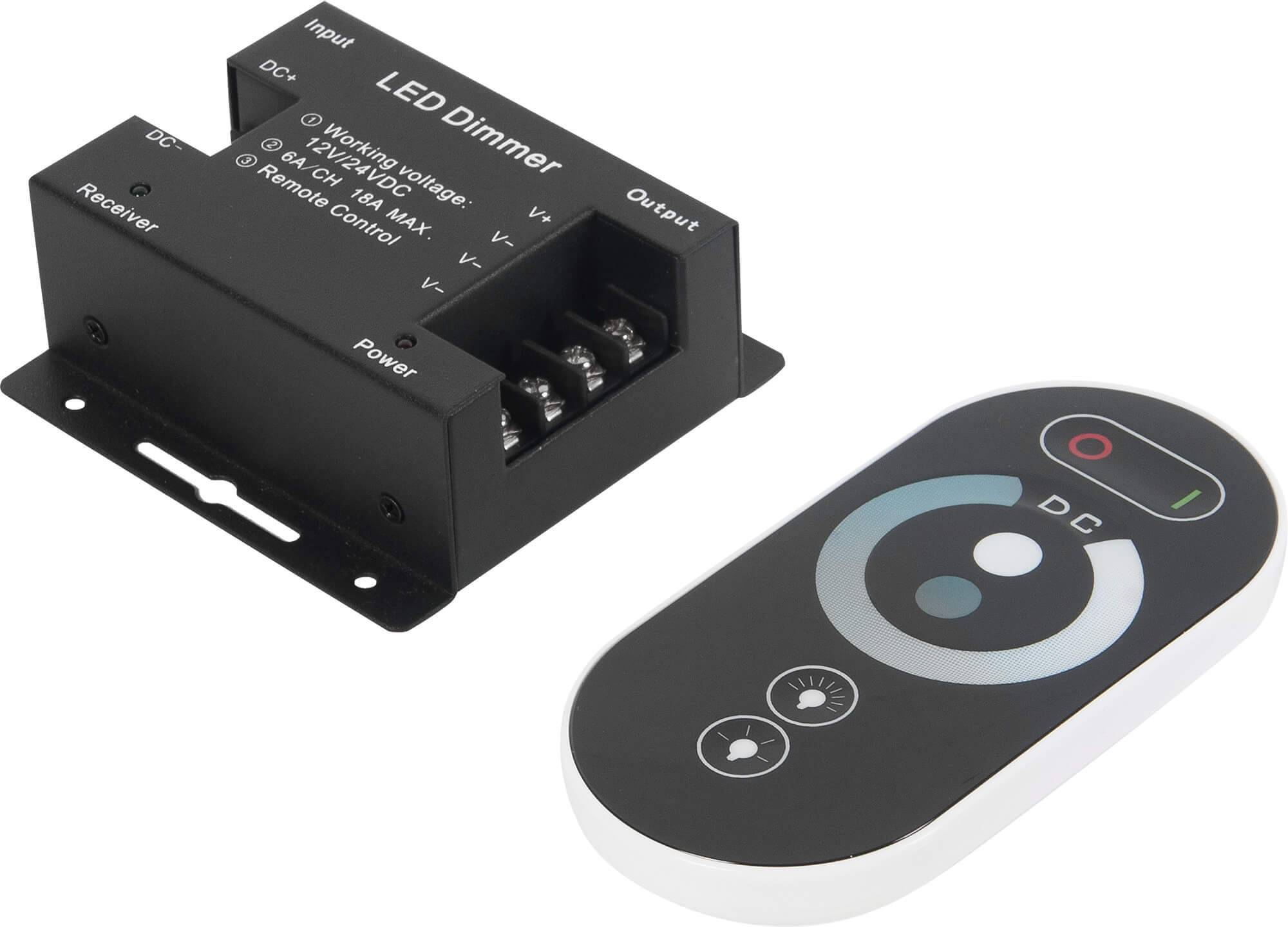 Сенсорный диммер позволяет регулировать мощность осветительных приборов в соответствии с собственными запросами и с запоминанием последнего подключения, управление осуществляется при помощи сенсорного устройства и посредством дистанционного управления через инфракрасный порт. В устройстве используется транзисторная технология.