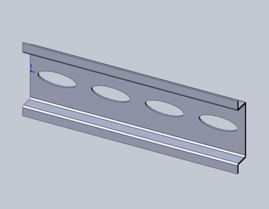 По своему прямому предназначению Дин-рейка служит монтажной шиной, представляющей собой профилированную полоску из стали. Горизонтальная площадка в большинстве типах реек перфорирована отверстиями овальной формой, необходимыми для прикрепления изделия в точке его установки. Отверстия располагаются на удалении друг от друга в 10-20 мм.