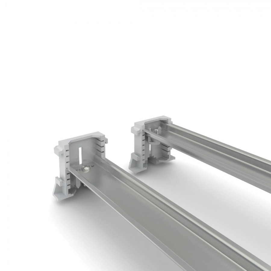 Выступы, расположенные на краях реек служат для удерживания установленных на ней приборов, которые могут вдоль нее относительно свободно передвигаться. Для предотвращения таких перемещений по краям реек устанавливаются специальные стопорные заглушки.