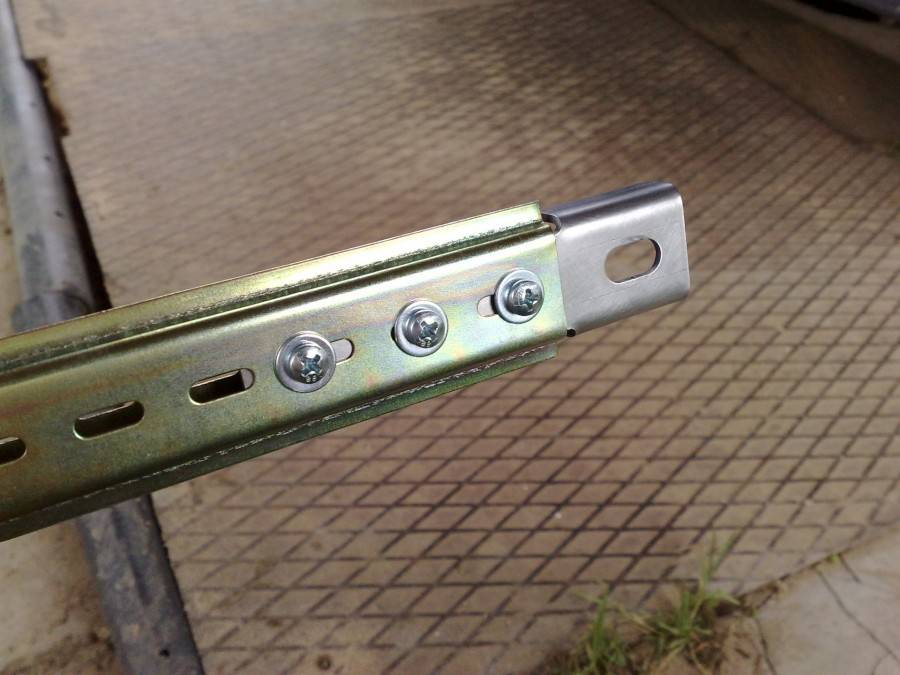 Монтажная планка имеет выступы по краям, которые способны удерживать водруженные на нее устройства. В производстве установки рейки необходимо учитывать ширину устанавливаемых механизмов. Для этого следует разрезать рейку, отмерив нужную длину, посредством болгарки или ножовки по металлу.