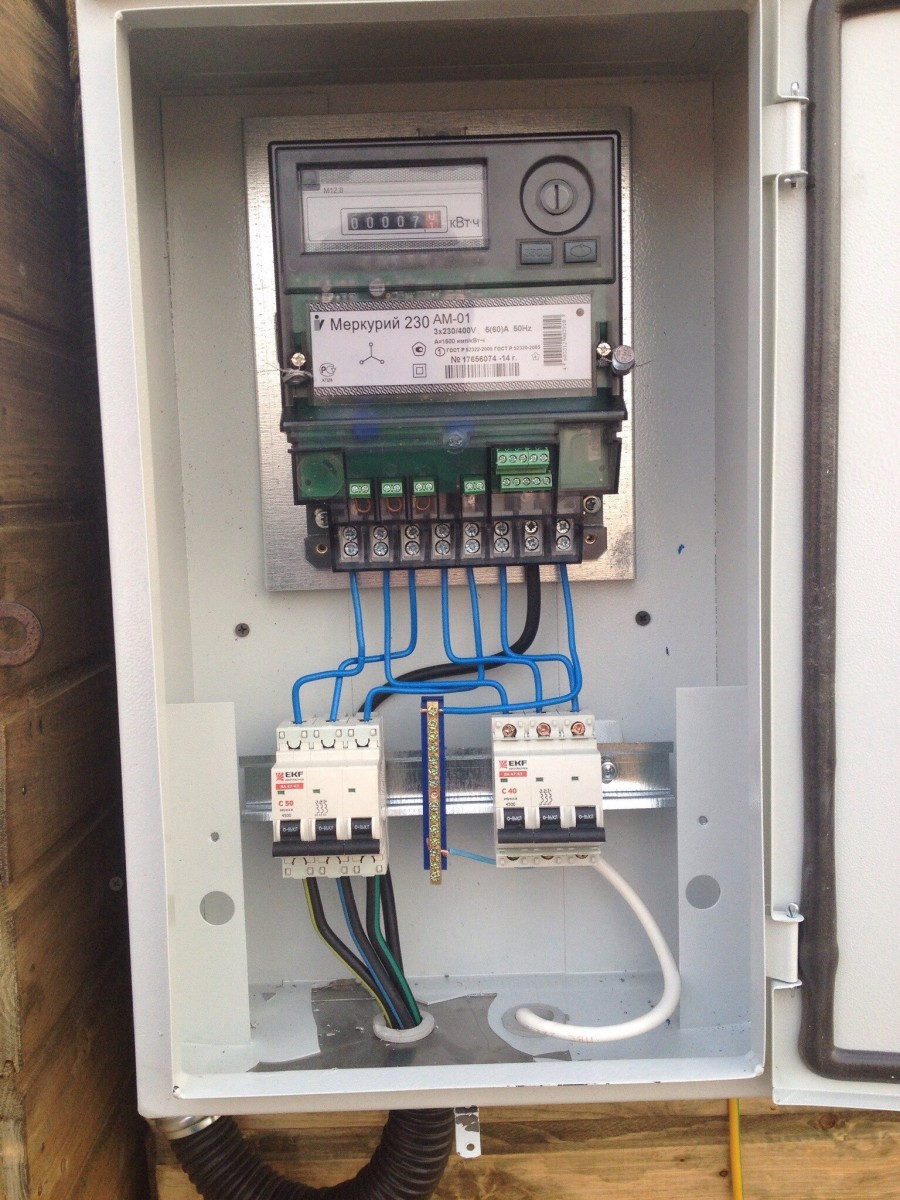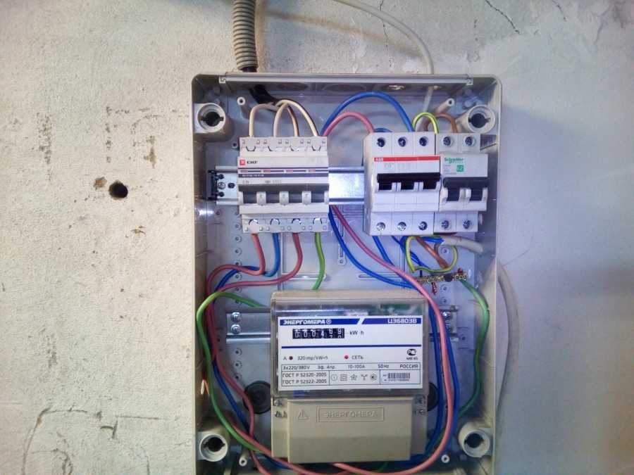 Для присоединения проводов к защитным устройствам, необходимо предварительно заготовить два кабеля, которые идут один к источнику питания, а другой от него. Первым подключается кабель, который питает электролинию.