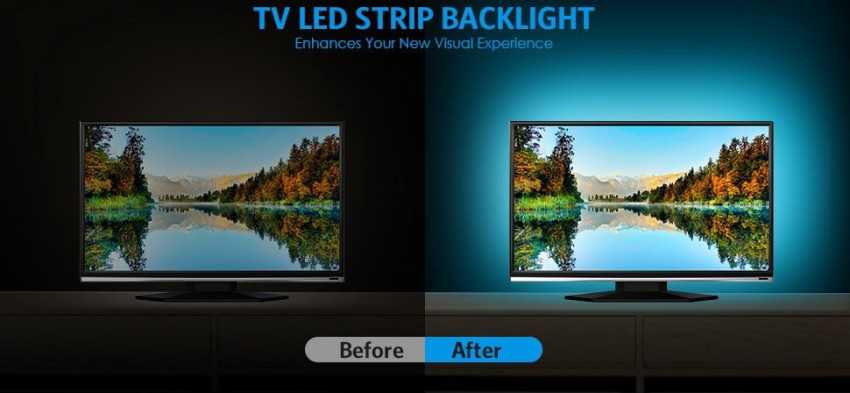 Подобный вариант подсветки носит скорее декоративный характер использования и, откровенно говоря, не очень нам интересен, так как имеет мало общего с технологией Ambilight. Но при этом, мы не можем отрицать его огромную популярность среди пользователей, так как он является наиболее дешевым и простым в установке вариантом. На Алиэкспресс его можно приобрести практически даром, здесь или тут.