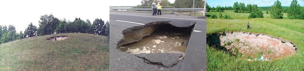 То же самое массовое беспорядочное дренирование приводит к т. наз. суффозии грунта, см. рис. В нем образуются подземные пустоты, их своды рано или поздно обрушиваются и внезапно возникают провалы. Предугадать, где и когда просядет земля от суффозии, невозможно.