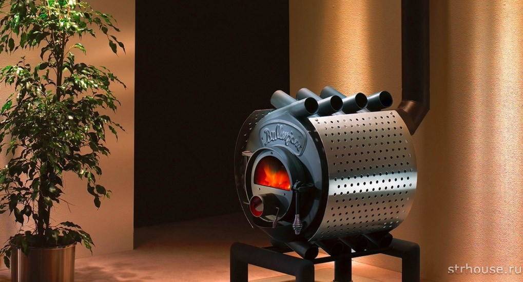 Напольная металлическая печь. В конструкции используется 11 труб, которые соединяются между собой. С их помощью обеспечивается естественная конвекция, в результате чего происходит быстрый прогрев помещения. Печка может использоваться для отопления различных построек.