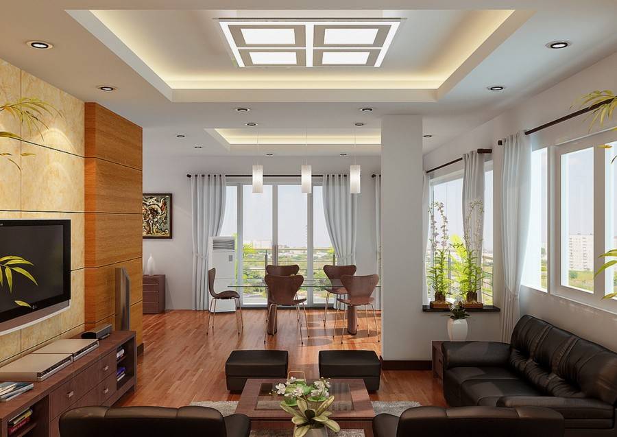 Важную роль играет глубина размещения источника света. По этому параметру потолочные светильники бывают: