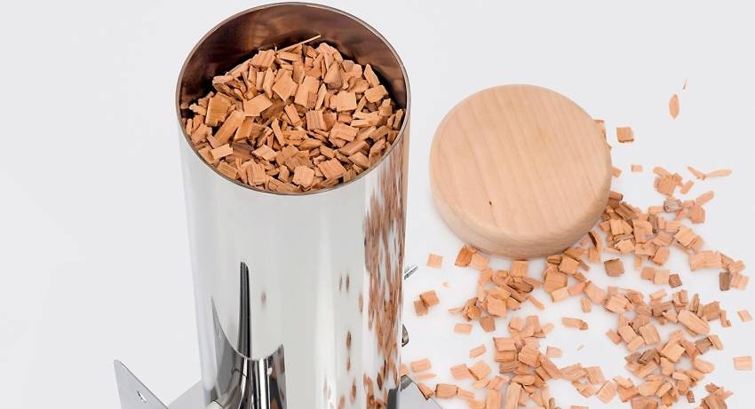 С помощью одного и того же устройства можно получать дым с разным запахом и свойствами. Надо лишь поменять тлеющий материал. Обычно, используются опилки или щепа из древесины лиственных пород. Опытные специалисты умеют делать смеси из разных материалов, добиваясь определенных качеств от выделяемого дыма. Это позволяет получать вкусные копченые продукты деликатесного качества.