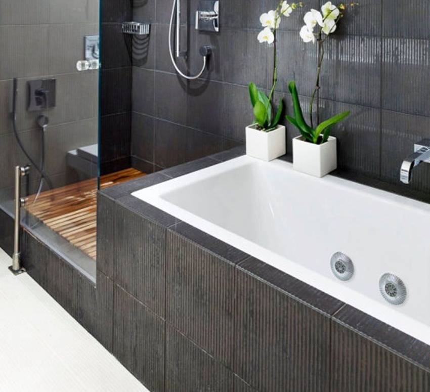 Учитывайте особенности интерьера вашей ванной. Если размер комнаты позволяет, можете обрамить ванну широкими бортиками. Образовавшееся пространство удобно задействовать под полочки или хранение косметических средств.