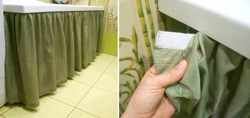 Главным преимуществом шторы под ванну из портьерной ткани является ее простота тзготовления и монтажа