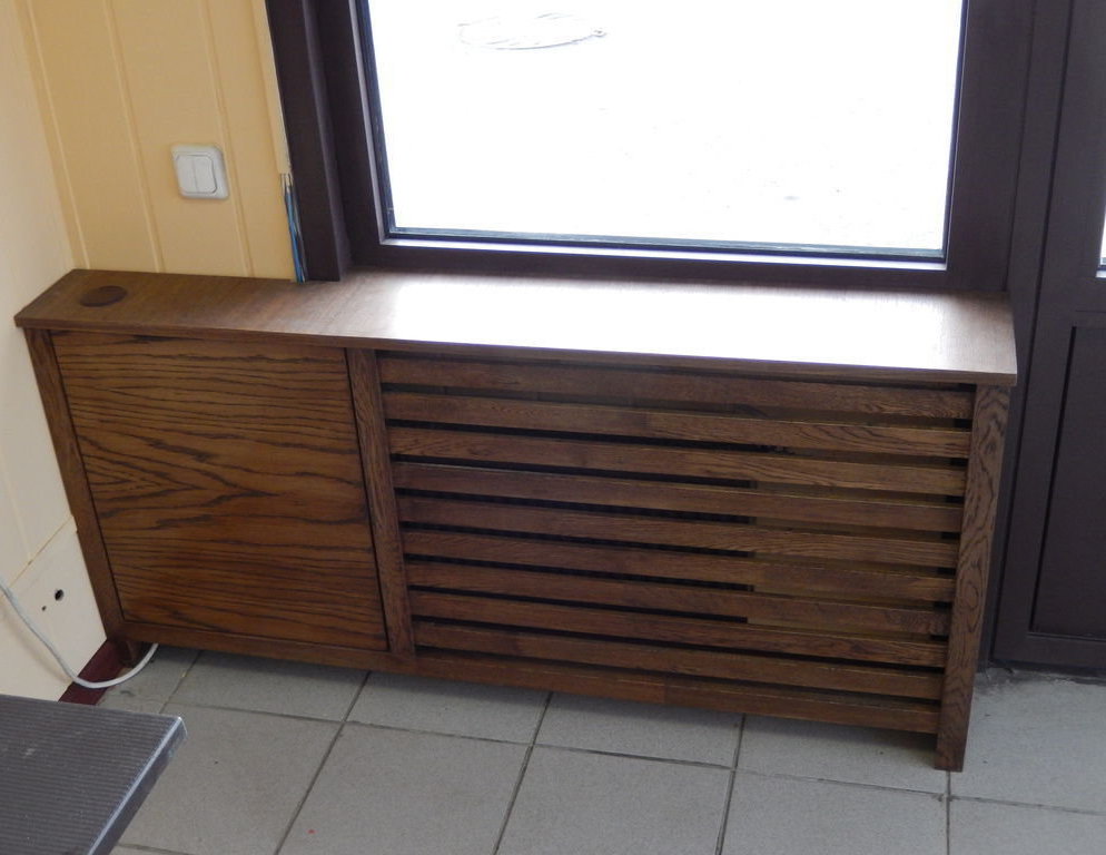 - навесные экраны, не имеющие крышки, позволяют закрыть чугунные радиаторы, расположенные под подоконником;