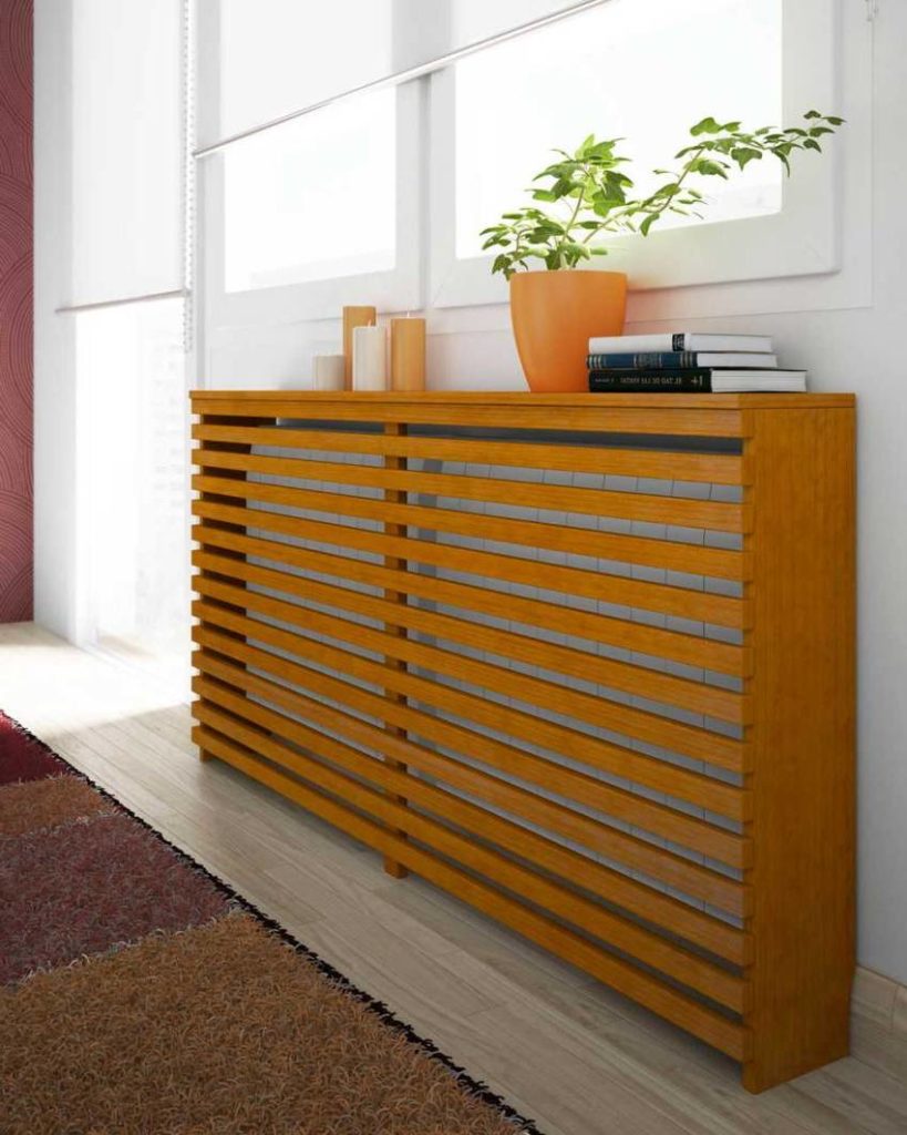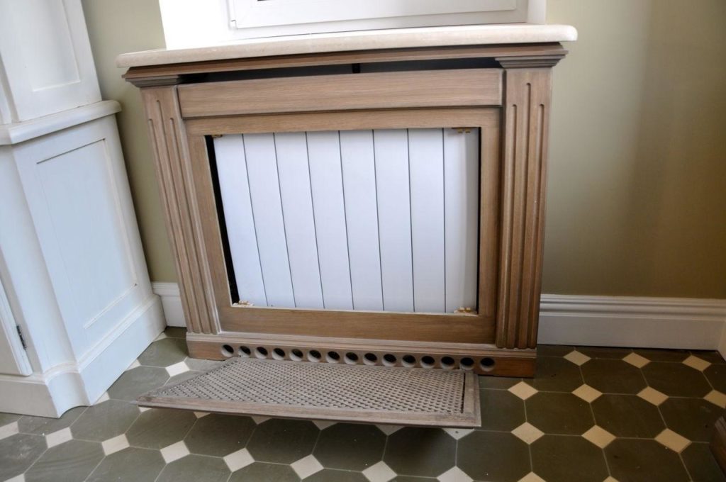Деревянный приставной короб для ограждения батареи — отличный вариант, который обеспечивает доступ к радиатору в случае надобности