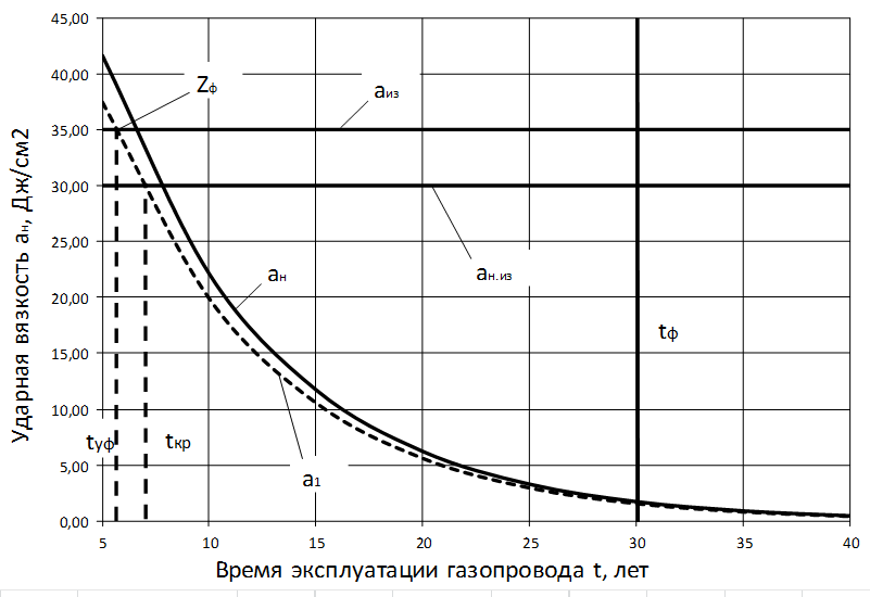 3 Расчёт остаточного срока службы газопровода по изменению ударной вязкости металла