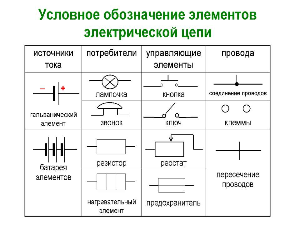 Содержит в себе определенный набор обозначений элементов, в соответствии с составом прибора. Для верной расшифровки чертежа необходимо знать основные условно графические отображения электроэлементов. В таком виде схем указываются связи между устройствами и сами их составляющие элементы. Для отображения силовых линий целесообразно чертить линейную схему, а для указания видов электрических цепей и проборов контроля, управления – полная принципиальная.