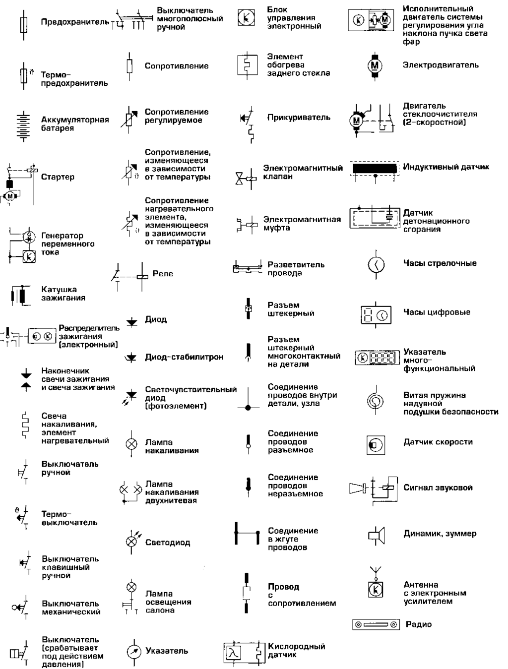 Условные изображения очень часто дополняются уточняющей информацией. При внимательном рассмотрении, можно увидеть возле каждого значка латинские буквенные символы. Таким образом обозначается та или иная деталь