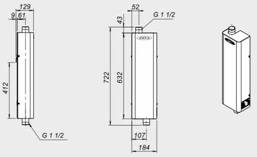 Расширительного бака вместе с насосом в нем не нет. Напряжение сети – однофазное и трехфазное. Подключение здесь простое, так что любой сможет разобраться в нем. Котел способен отапливать площадь в 50 кв. м., вешается на стену. Выполнен из нержавеющей стали. Его тепловая мощность доходит до 5 кВт.