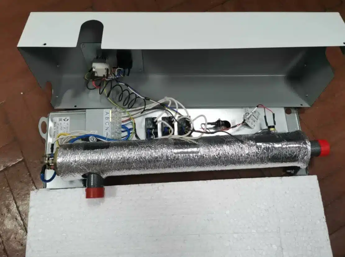 Теплообменником является электрод, соединённый с теплоносителем. Именно электрод нагревает воду, вступая с ней в непосредственный контакт.